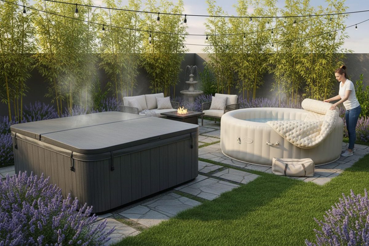 À l’inverse, les couvertures de spa gonflables se composent généralement de PVC léger ou de tissu polyester, parfois combinés à une chambre d’air. Leur principal avantage réside dans leur facilité d’installation et de manipulation. Légères et peu encombrantes, elles sont simples à mettre en place, à retirer et à transporter, ce qui les rend pratiques pour un usage ponctuel ou saisonnier.