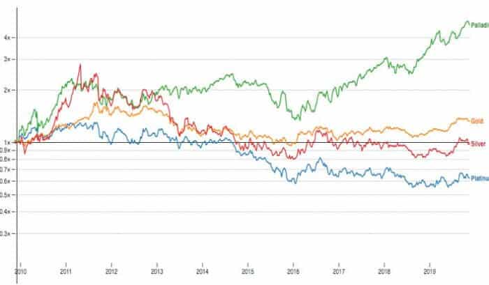 Juste avant la crise financière, le platine a touché des sommets. Mais le choc économique a aussitôt fait basculer sa valeur. L’industrie, principal débouché du platine, s’est tournée vers des matériaux alternatifs comme le palladium, alors bien plus abordable. On aurait pu penser que le retour du platine s’imposerait avec la flambée du palladium, mais le marché n’a pas suivi cette logique.
